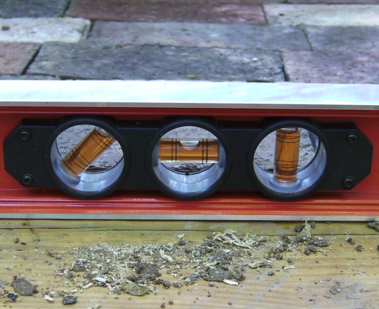 And then we test, yet again, to see if the stair frame is level.