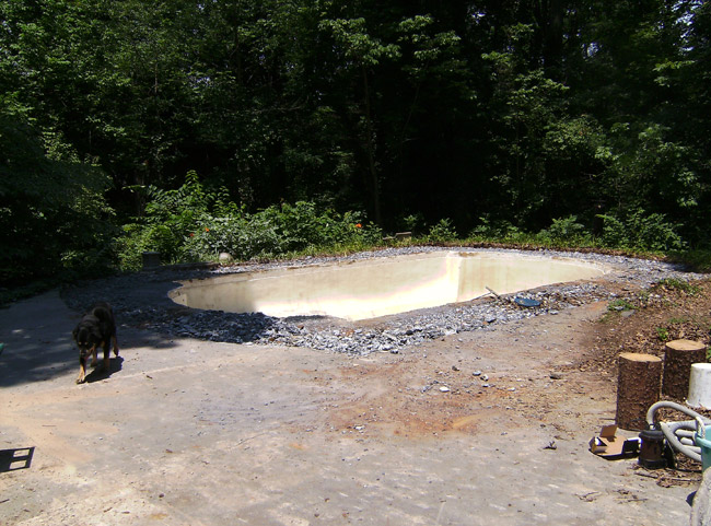 That’s our pool. Or it was, a week ago; the concrete and coping that was in such terrible shape has been ripped up and carried away.